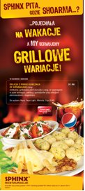 Sphinx, sieć restauracji zarządzana przez Sfinks Polska, wprowadził ofertę promocyjną pod hasłem „Gillowe wariacje”. Od 11 lipca w karcie dań znajdują się dwa nowe zestawy w atrakcyjnej cenie bazujące na mięsach z grilla – delicja z piersi kurczaka ze szparagami w sosie serowym oraz karczek wieprzowy w ziołach z pieczarkami. Oferta jest dostępna we wszystkich restauracjach Sphinx do końca sierpnia.